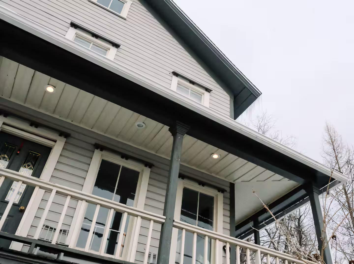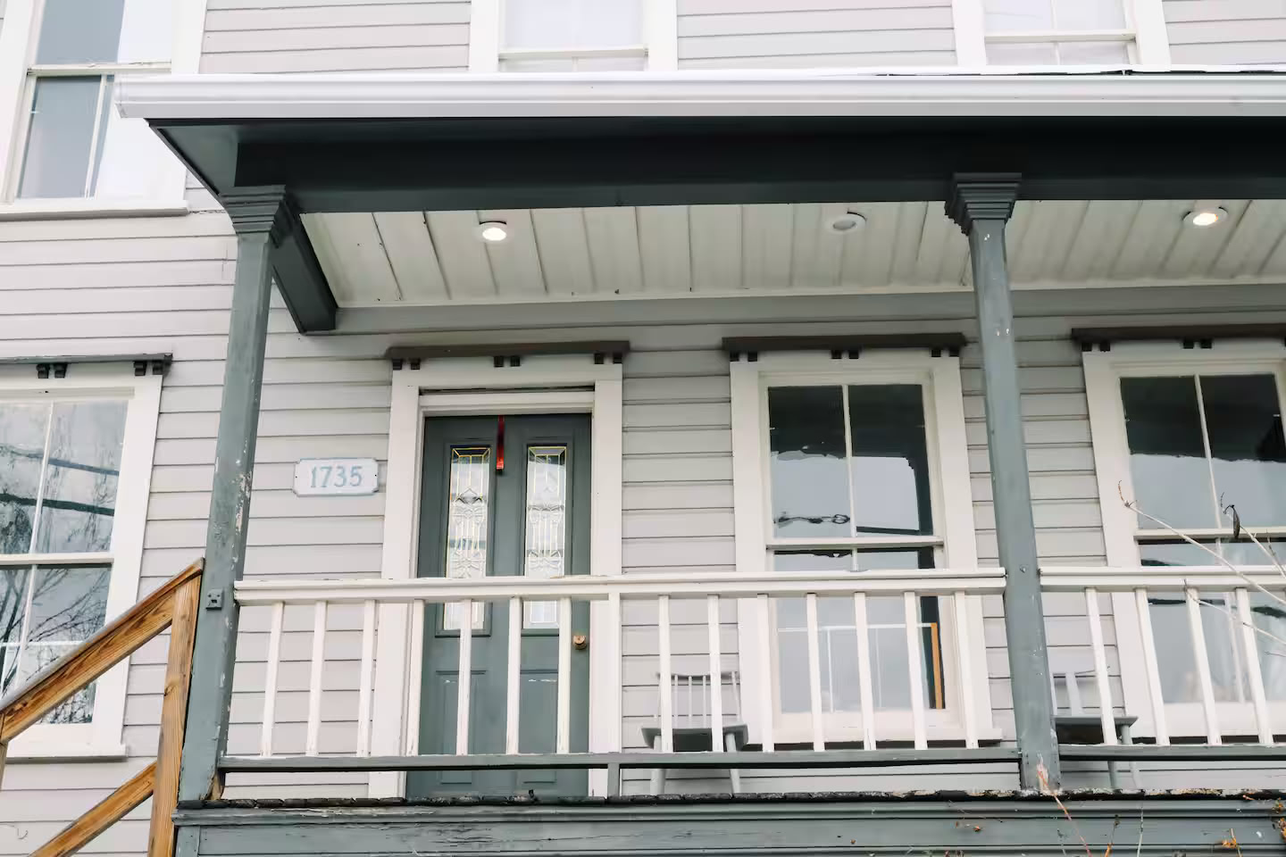 The home is elevated off main street. A short flight of stairs is required to access the front porch.